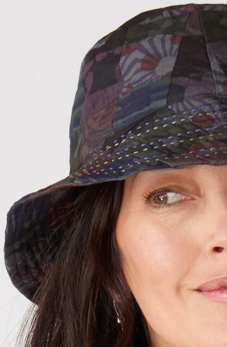 Upcycled Patchwork Bucket Hat - Chindi/Black